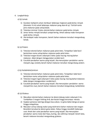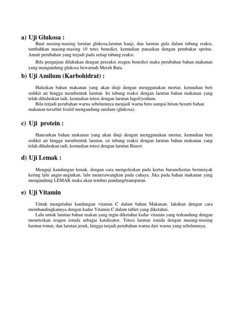 Uji Makanan Dengan Lugol Benedict Biuret Kertas Minyak
