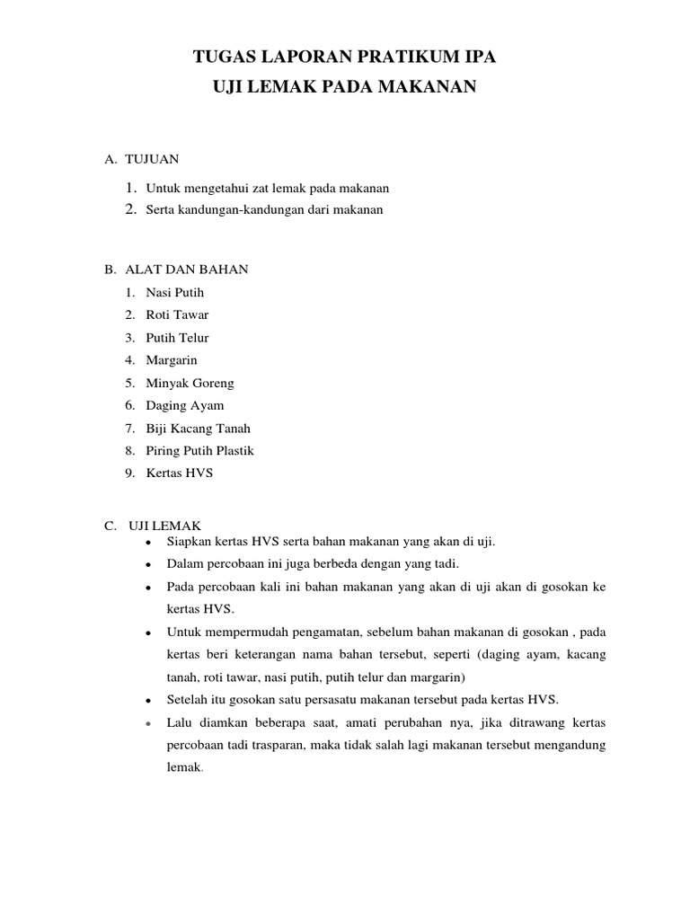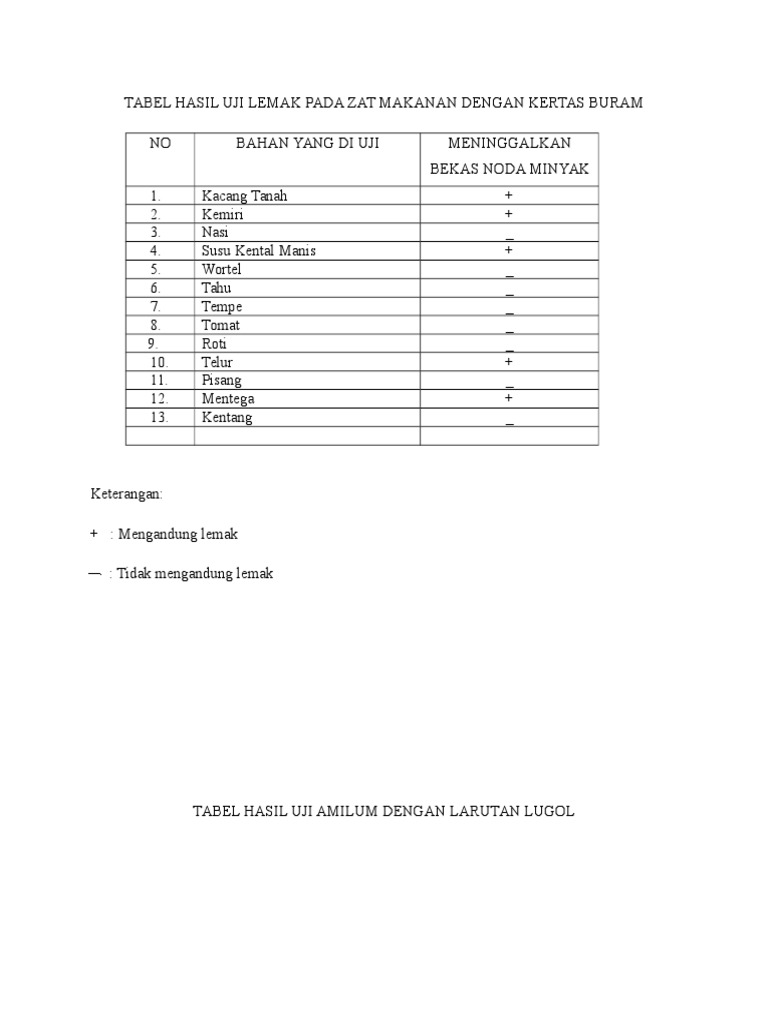 Tabel Hasil Uji Lemak Pada Zat Makanan Dengan Kertas Buram Pdf